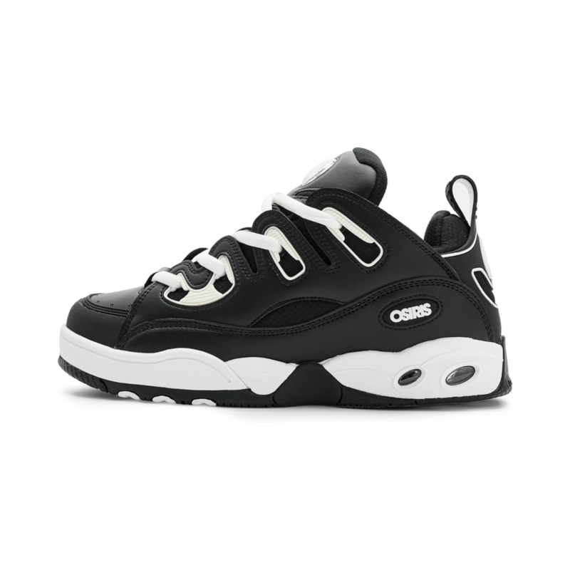- Make a striking style statement wearing Osiris D3 E Athletic Shoes, designed in an iconic styling with reinforced high abrasion areas for superior durability. The low-top, lace-up sneakers feature a faux leather upper, cotton lining, and comfortable rubber insole. Plus, the heel pull loop, side logo detail, and a little extra steeze on the lace loops enhance the style.