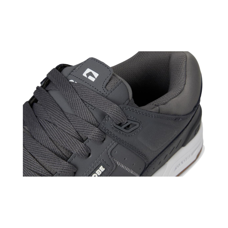 - Skate shoes with leather and synthetic uppers.