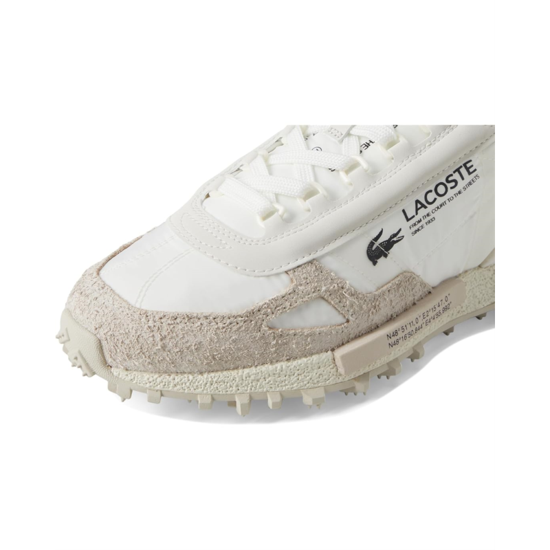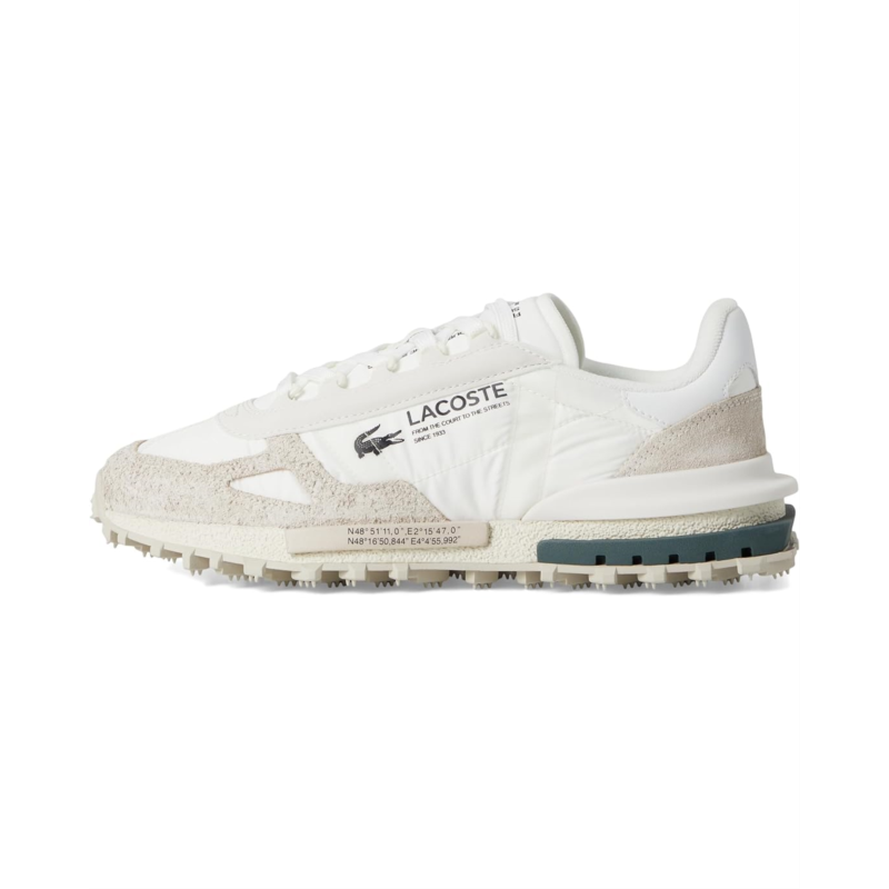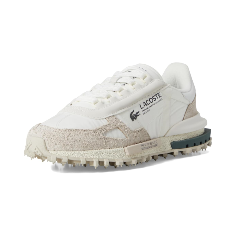 - Run for life or run for your own health, the Lacoste Elite Active Sneakers gives ultimate comfort. Crafted from unstructured nylon and suede upper, textile lining, and EVA insole, this pair of shoes features round toe, lace-up closure, shock-absorbing EVA midsole, TPU-reinforced heel for optimal support, rubber outsole with picots for maximum grip, printed crocodile on side, and printed branding on center panel, tongue and midsole.