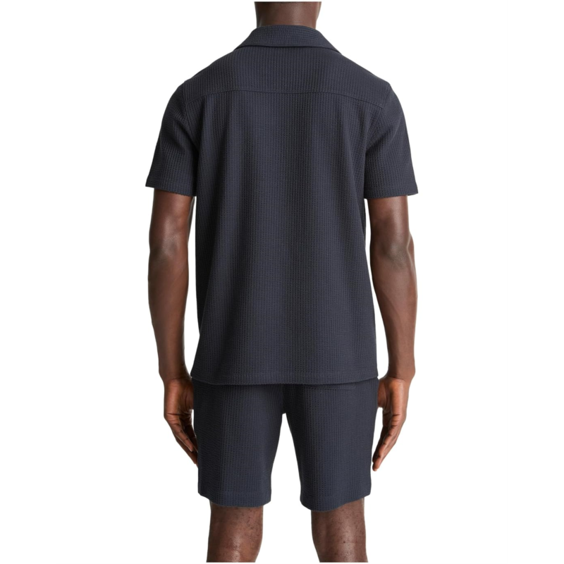 [US] Mens Vince Seersucker Knit Short Sleeve Johnny Collar