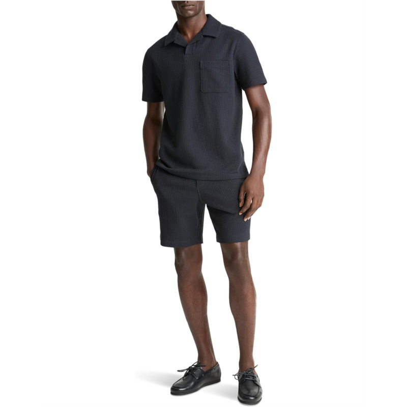 - Casual comfort at its best, the Vince Seersucker Knit Short Sleeve Johnny Collar Polo is a cool addition to your wardrobe. The timeless Johnny-collar polo is reimagined in a textural cotton seersucker. The polo shirt features a patch pocket at the left chest, short sleeves, and a straight hem. You can pair it with the matching shorts.