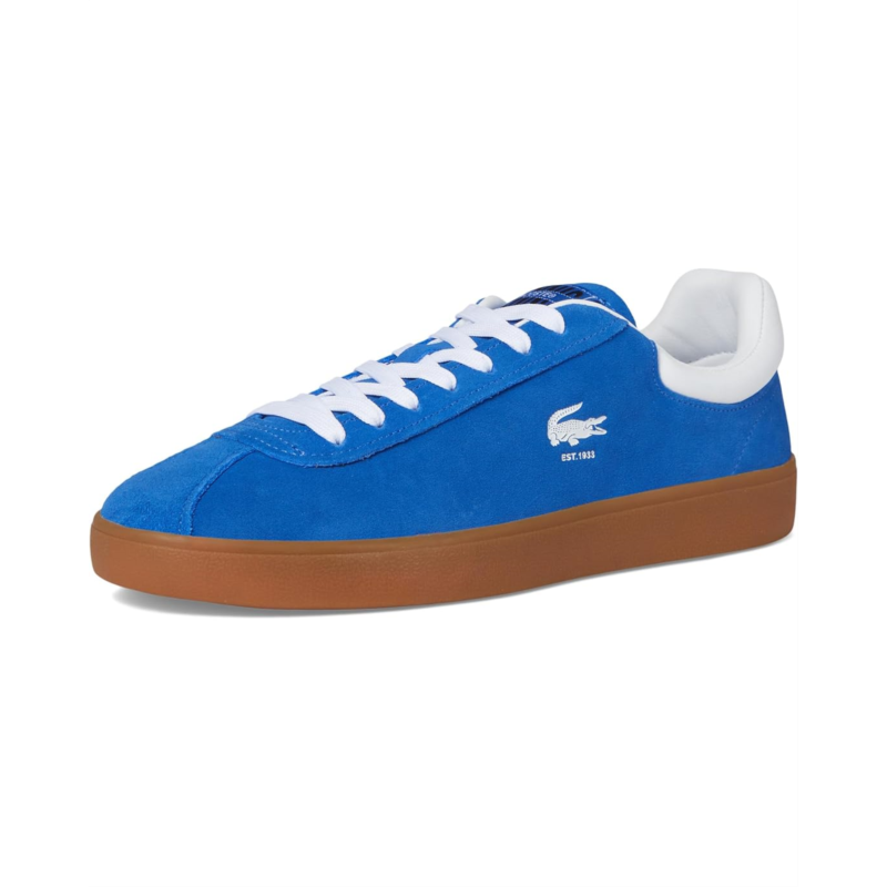- The Lacoste Baseshot Sneakers are designed with a plush leather upper, a contrasting rubber outsole, and branded embroidery to the tongue, offering a timeless appeal. These shoes feature gold foil print and debossing and an embroidered tongue label. The EVA insole and polyester lining keep your feet cool and comfortable.