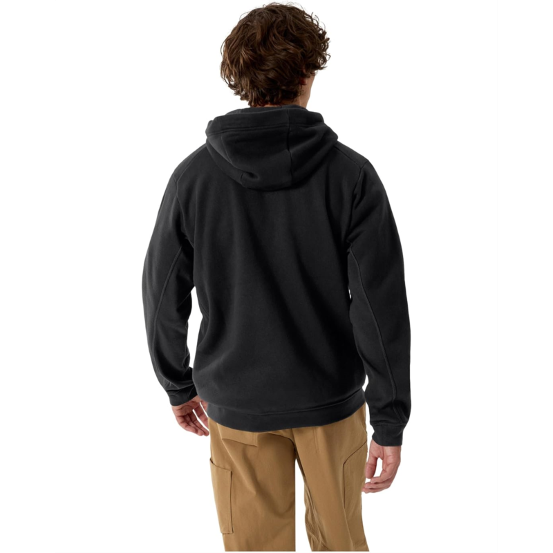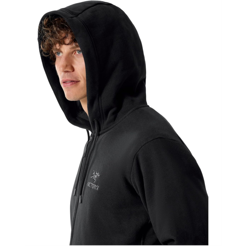 - The Arc''teryx Emblem Fleece Full-Zip Hoody brings together rugged functionality and laid-back style for those who live life on the move. Crafted from soft fleeceback jersey, this hoody feels incredibly gentle against the skin while delivering dependable warmth wherever your day takes you. The tall collar and full zippered closure lock in heat, while the drawstring hood offers extra protection from unexpected rain or wind. Designed with a regular fit, ribbed trims, and long sleeves for all-day comfort, it''s perfect for layering or wearing solo. The kangaroo pocket adds both practicality and style, ideal for stashing essentials or warming cold hands.