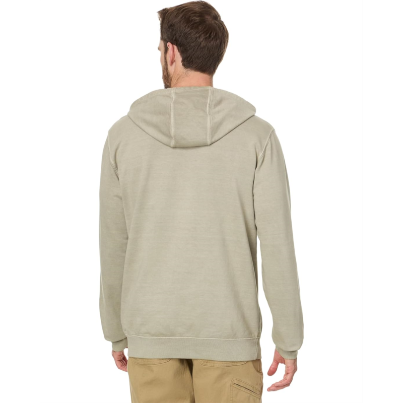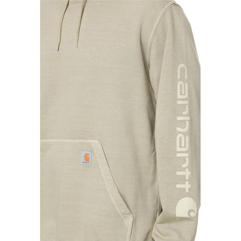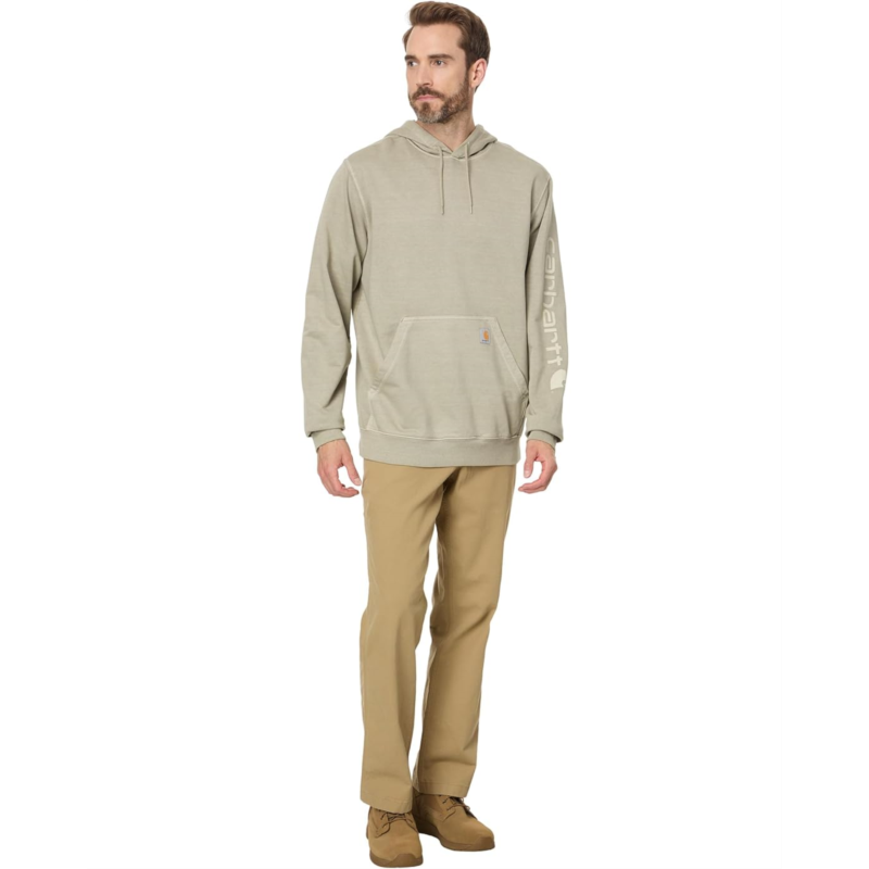 - A workday staple, the Carhartt Relaxed Fit Midweight French Terry Graphic Sweatshirt is equally comfortable on the weekend. The midweight cotton fabric of the sweatshirt feels soft against the skin. A relaxed fit means you have a little extra room to move. This cotton sweatshirt comes with spandex-reinforced rib-knit cuffs and a waistband for a snug fit. The long sleeves, attached three-piece hood with drawcord closure, and straight hem offer added comfort and style. This hooded sweatshirt is garment dyed for a worn-in look.