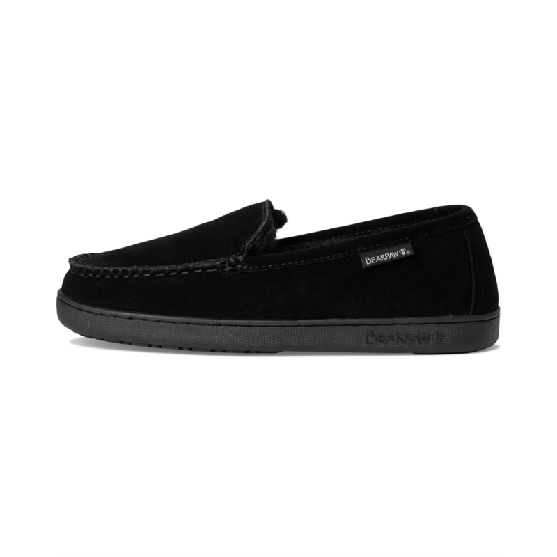 - Effortlessly transitions from cozy indoor moments to stylish outdoor adventures wearing the Bearpaw Brian Loafers. Treated with BearCoat Rain & Stain Repellent coating, the slip-on style loafers feature a suede upper, wool blend lining, and a faux shearling insole.