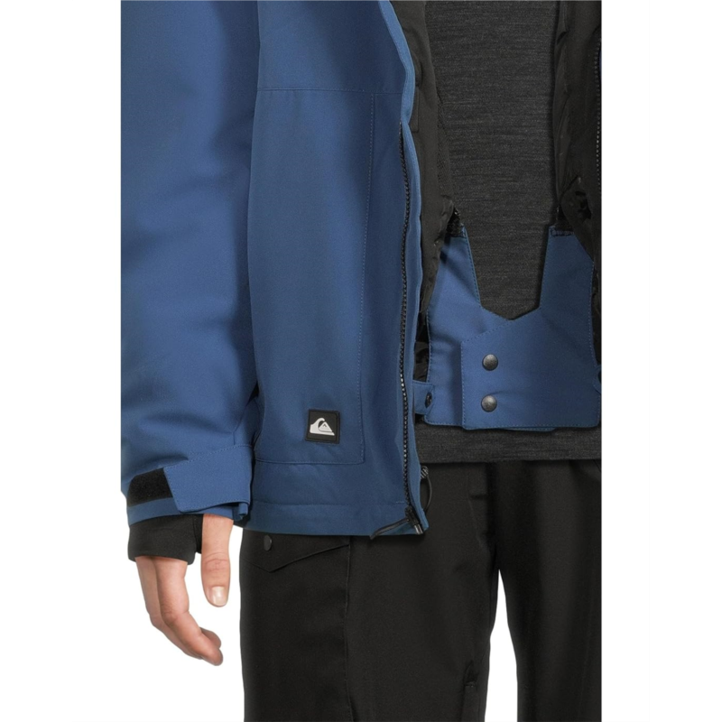 - Ready for snow season? This modern-fit snow jacket from Quiksilver keeps you dry with 10K waterproofing and smart features like underarm vents and a removable powder skirt. Multiple pockets stash your essentials, while the helmet-compatible hood adds protection. Made with recycled polyester, its a sustainable choice for conquering the slopes.