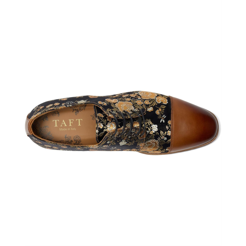- The Taft Jack shoes are not your average Oxford. Not even close. These dress shoes bring handcrafted swagger to the boardroom with genuine leather uppers and fabric contrast that demands a second look. They dont just complement your tailored game but elevate it with deliberate details and old-world construction that separates the sharp from the forgettable. Built on a comfort footbed with buttery leather lining, these low-top shoes stand tall on block heels that add presence without compromise. The almond toe design keeps lines clean and confident, while the lace-up closure locks in a fit that feels as good as it looks. Their leather insole provides cushioned comfort. Underfoot, the leather outsole delivers pure confidence with every step - from conference room power moves to after-hours networking. These lace-up dress shoes are where heritage craftsmanship meets modern ambition, where fabric meets leather in perfect tension. Where every handshake starts with the foundation youre standing on.