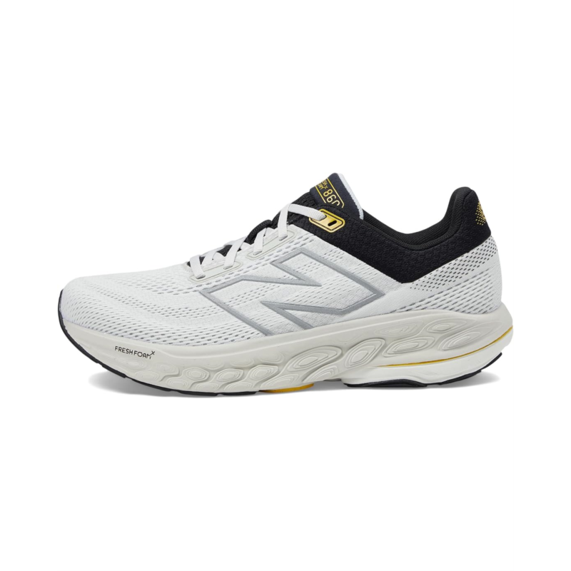 - Run like the wind in style and comfort! The New Balance Fresh Foam X 860v14 features a breathable mesh upper and durable outsole for superior ventilation and grip. Enjoy the cozy embrace of cotton lining and a secure fit with lace-up closure. Designed with a round toe for enhanced comfort, these running shoes are your perfect partner for every mile.