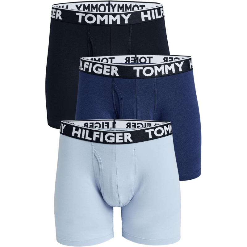 - Featuring an elasticized waistband, the Tommy Hilfiger Cotton Stretch Boxer Brief 4-Pack keeps you comfy all day long. The signature brand detailing on the waistband adds to the overall look of these briefs.