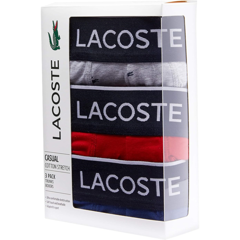 - The Lacoste Trunks 3-Pack Casual Lifestyle All Over Print Croc combines simple elegance and fashion. These trunks are crafted in a soft cotton stretch blend for a comfortable fit, and feature an allover croc print.