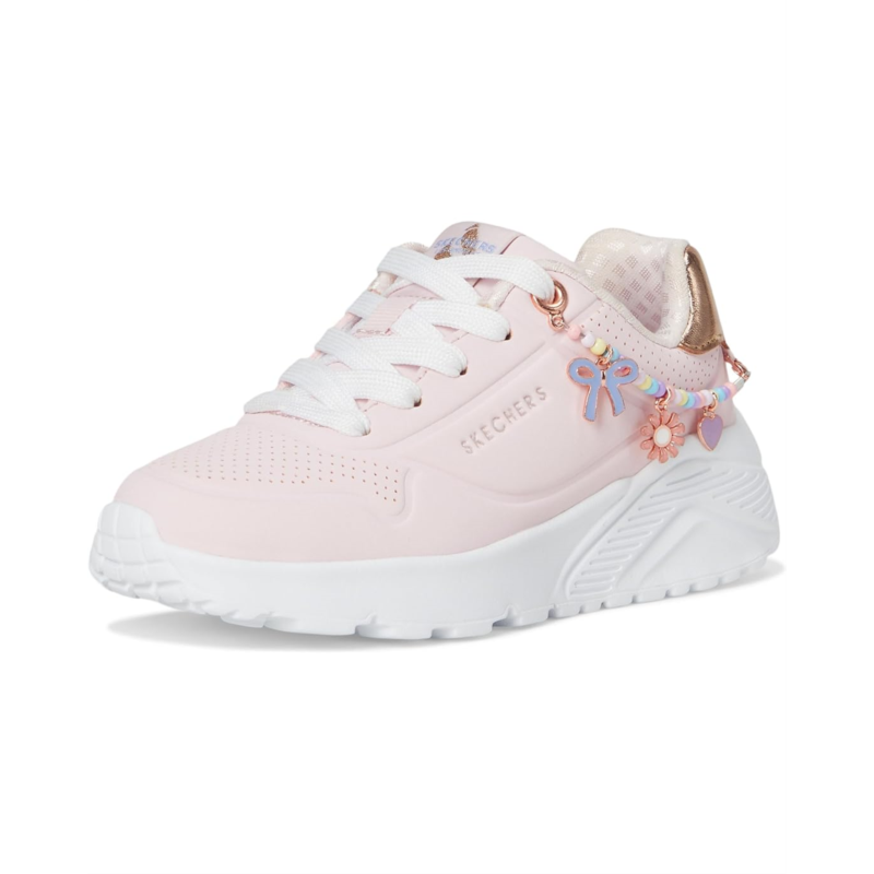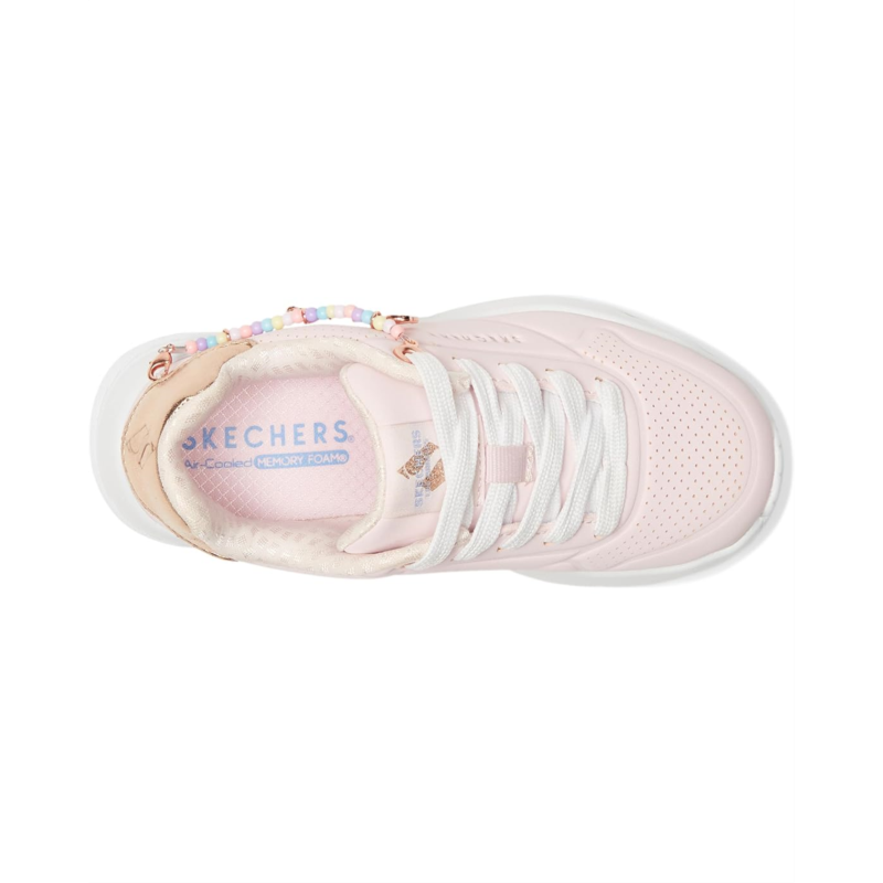 - Glam up your outfit with cushioned comfort wearing SKECHERS KIDS Uno Lite 310423L. This lace-up fashion style features a collar charm bracelet, Skechers Air-Cooled Memory Foam insole, plus a platform wedge cushioned midsole.