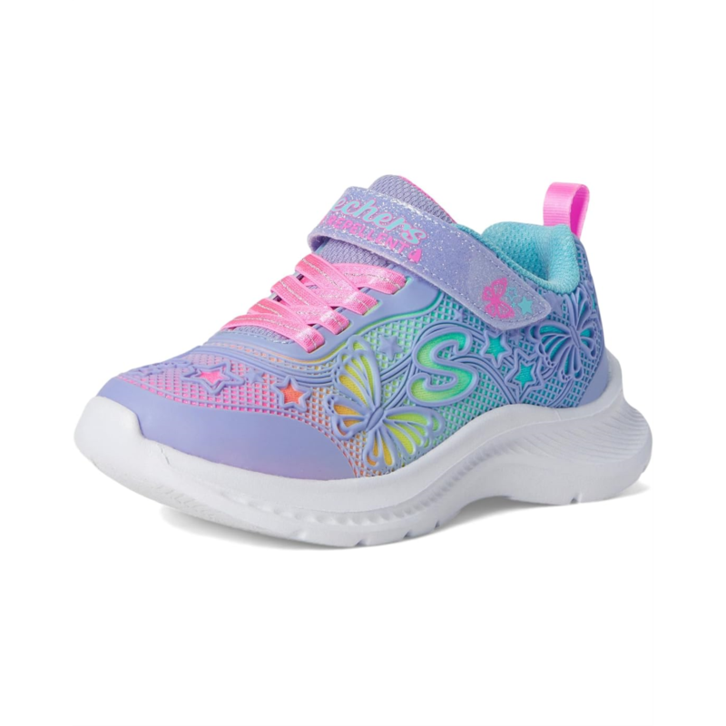 - Designed with a lace-up closure and a hook-and-loop strap, the SKECHERS KIDS Jumpsters 2.0 303380L sneakers are perfect to pair with your kids different outfits and styles. They are made of an EVA footbed and cotton lining. The water-repellent polyurethane upper features ombre underlay and Skechers logo detail. Colorful and stylish, these lace-up sneakers will become your kids favorite.
