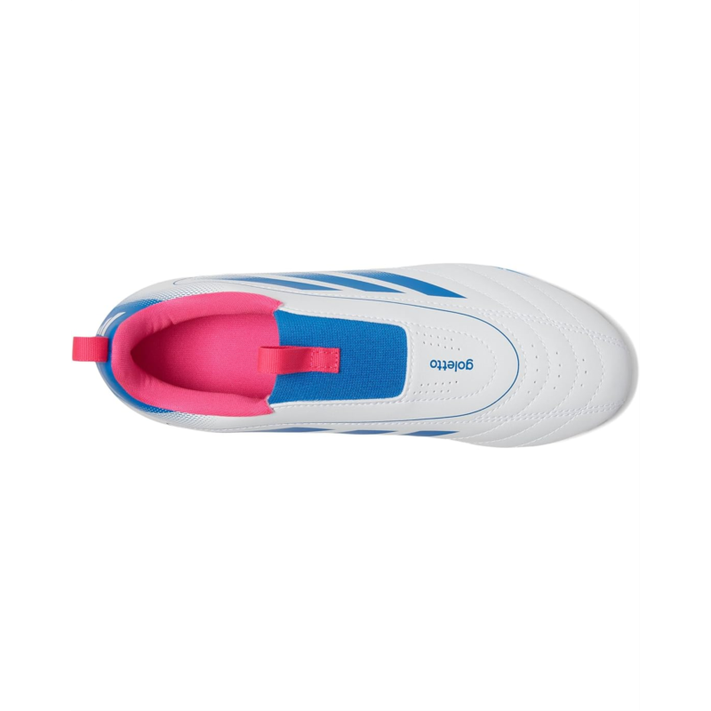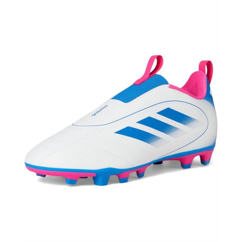 - Kickstart confidence, dominate the game! Step onto the field in adidas Kids Goletto IX Laceless Soccer Cleats, designed for unmatched agility and control. Featuring a sleek rubber upper and synthetic rubber lining, these cleats ensure lightweight durability and all-day comfort. The laceless design offers a snug fit and quick wear, while the firm/multi-ground synthetic rubber outsole delivers superior traction on various surfaces.