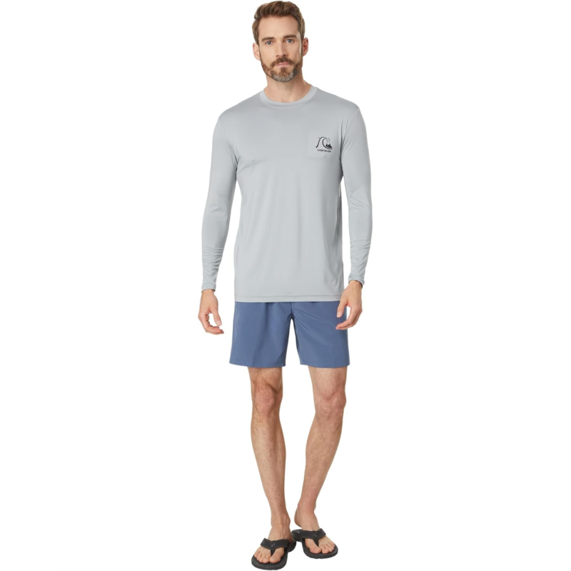 The primary materials that compose this product contain a minimum of 20 percent recycled content.- Surfs up! Vibes are high! The Quiksilver DNA Bubble Logo Tee is your new beach essential. This loose-fit surf tee combines StretchFlight technology for flexibility that never wears out, while long sleeves with thumbholes ensure extra coverage and comfort. With UPF 50+ sun protection, youre shielded from harmful rays, and its chlorine-resistant fabric guarantees long-lasting wear. Moisture-wicking properties keep you dry, pulling sweat away from your skin for all-day freshness. Whether youre catching waves or chilling by the shore, this crew neck, pull-on surf tee is your ultimate companion for any water adventure!