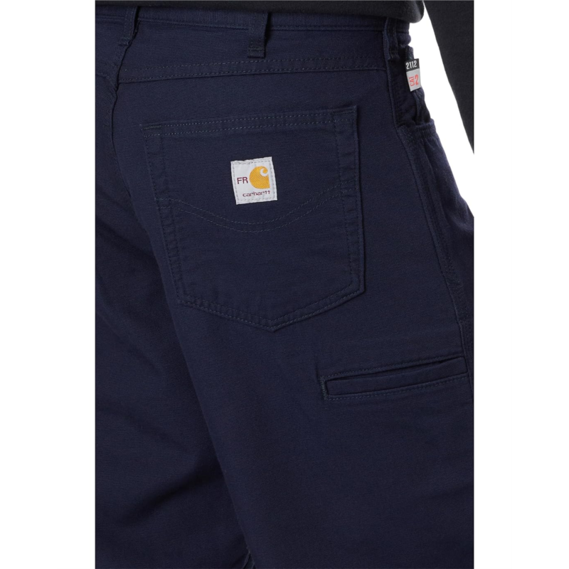 - Perform your duty under the hardest conditions with these built-to-last Carhartt Flame-Resistant (FR) Canvas Pants. These long-lasting pants are designed in a durable cotton blend that meets NFPA 2112 fire resistance requirements. Eased through the thigh with a generous cut and NFPA 70E performance mobility.