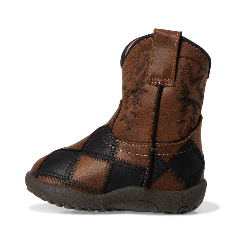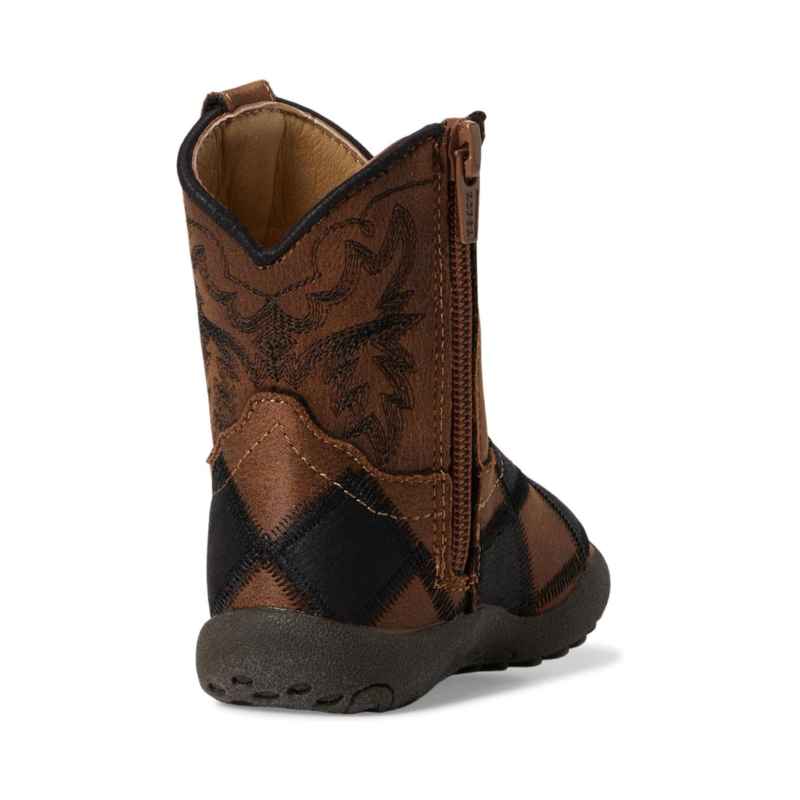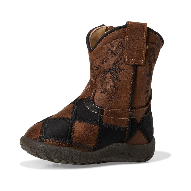 - Let their imagination take flight with the Roper Kids Cowbabies Bird Blocks boots. Designed with colorful block patterns and Western-inspired charm, this mid-calf boot boasts a side pull tab and zippered closure for easy wear. Crafted with a flexible thermoplastic polyurethane outsole, it''s perfect for everyday play.