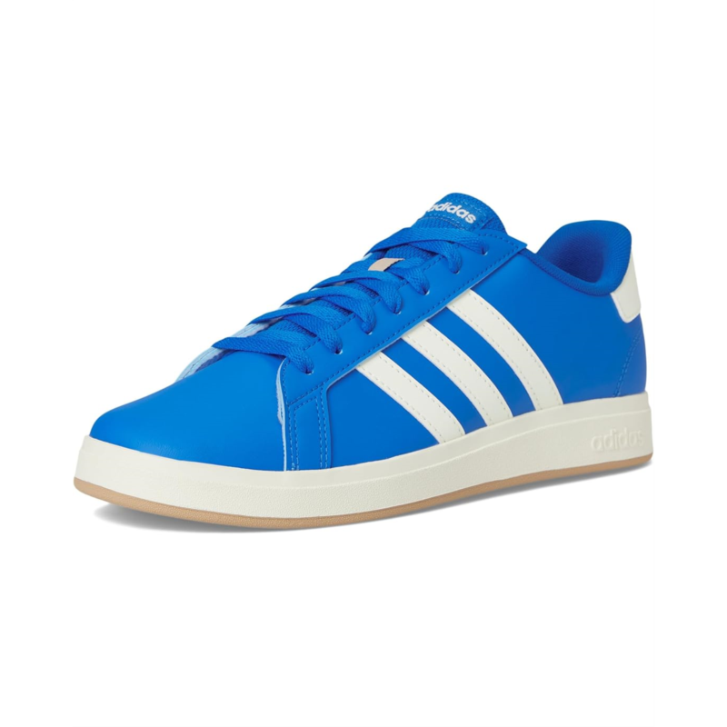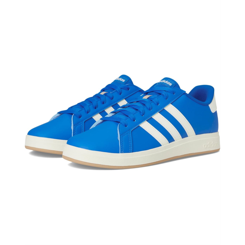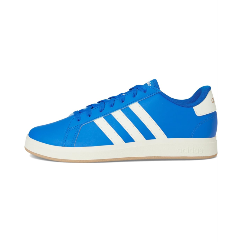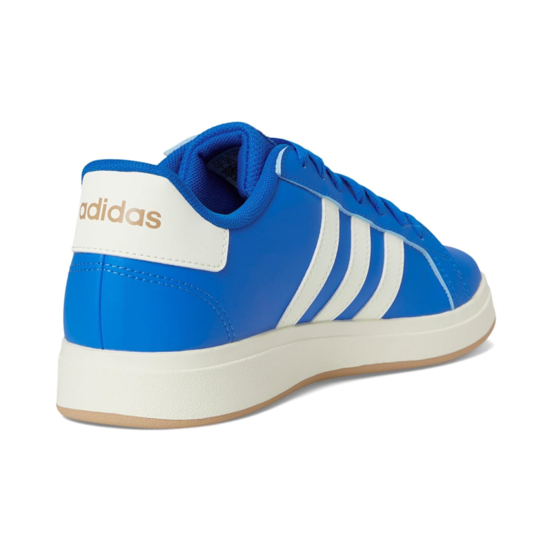 - Bring a retro vibe to your juniors sporty attire while letting them enjoy exceptional comfort during their game day wearing the adidas Kids Grand Court 2.0 Sneakers. Crafted from a synthetic leather upper, these shoes offer a traditional lace-up closure in a round toe silhouette, padded tongue and collar for added support, and a cushioned textile insole for lasting comfort.