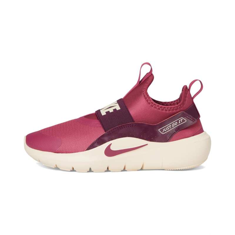 - With the Nike Kids Flex Runner 4, every step is a flex. With a breathable mesh upper and durable synthetic rubber lining, these pull-on sneakers are made for kids on the go. Easy pull tabs on the heel and tongue pair with a stretchy inner sleeve for a hassle-free fit, while elastic straps across the foot deliver a snug, locked-in feel. Flex grooves in the rubber outsole make every step smooth and natural, while multi-surface traction and sturdy heel foam give grip and support through sudden turns. Reinforced toe boxes and tough materials keep up with wild playground adventures. Plus, soft foam cushioning keeps little feet comfy from the first dash to the final jump.