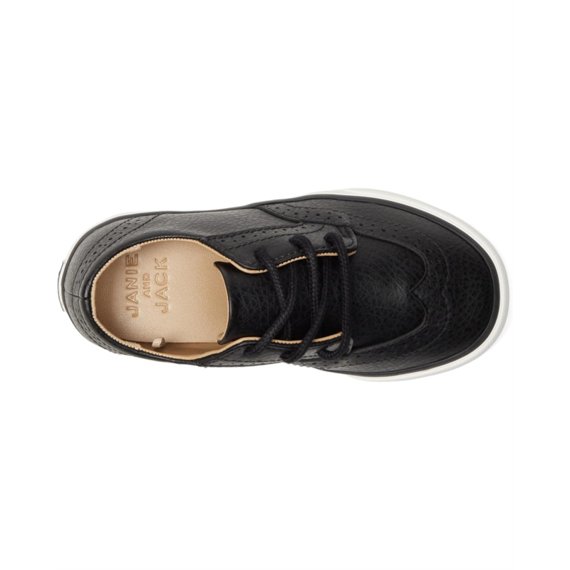- The Janie and Jack Wingtip Sneakers bring timeless charm to modern playdays. Designed with a sleek PU upper and lining, these sneakers blend the sophistication of classic wingtips with the comfort of everyday wear. The soft cotton insole keeps every step cushioned, while the durable rubber outsole ensures sturdy traction for little explorers on the go. A lace-up closure adds that polished, grown-up touch.