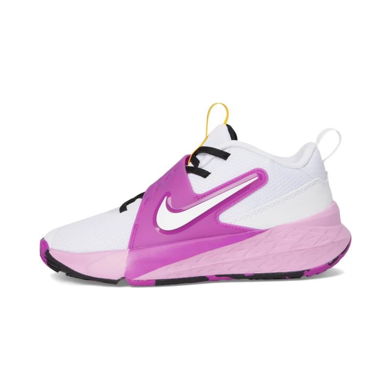 - The Nike Team Hustle D is made for kids who love to hoop. Stretchy elastic laces and a strap closure make it easy for kids to secure their fit. Underfoot, plush foam and a durable rubber outsole give them the cushioning and grip they need to confidently play on outdoor courts.