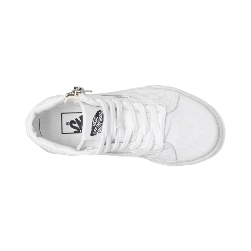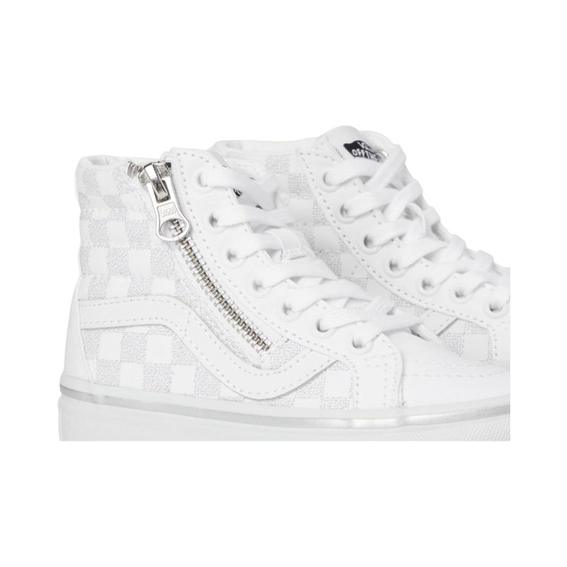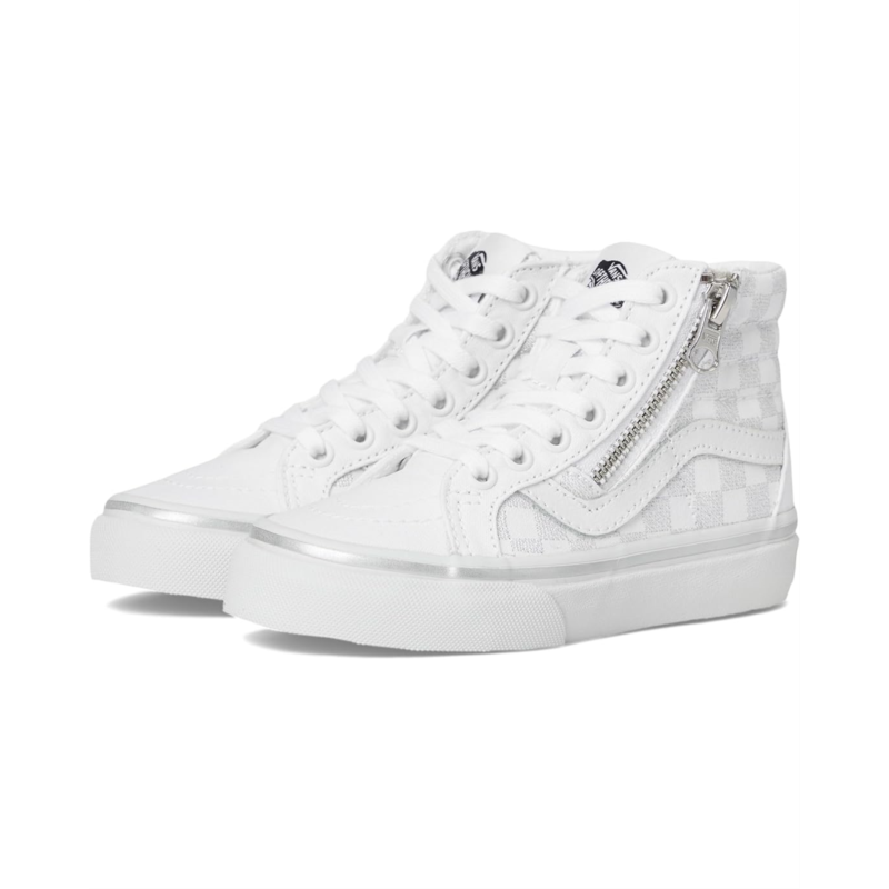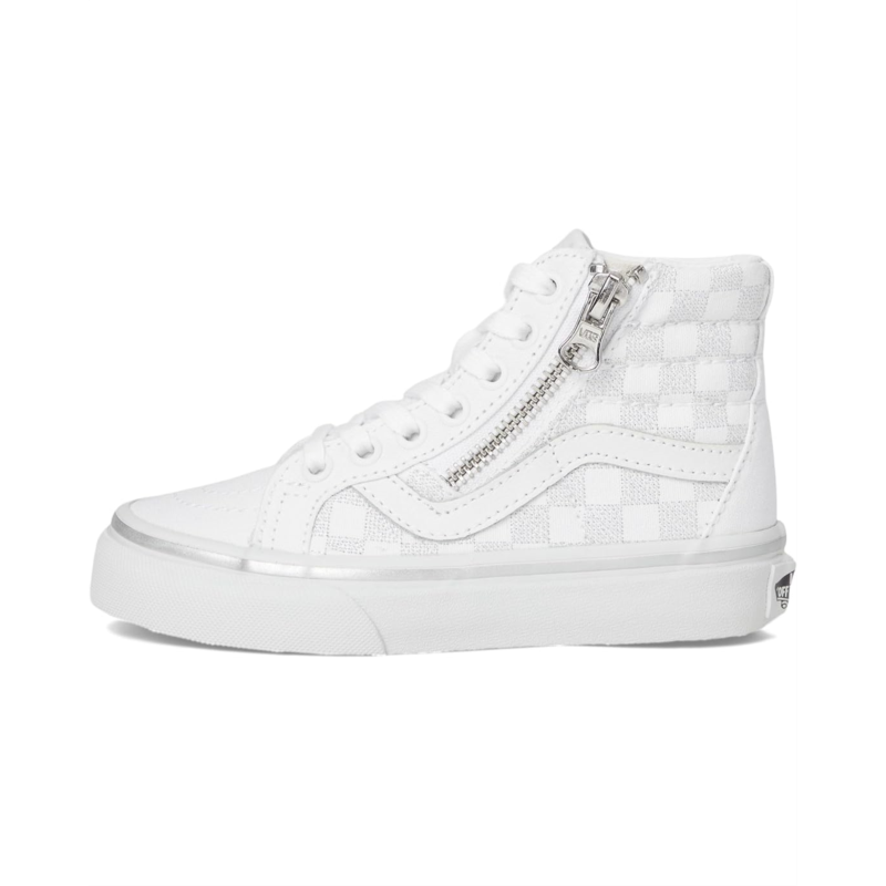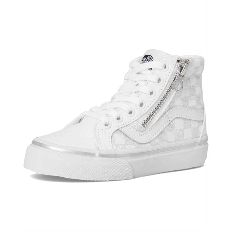 - The Vans Kids Sk8-Hi Reissue Side Zip blends iconic skate style with kid-friendly functionality, offering a high-top silhouette and easy-access design. This legendary Sk8-Hi shoe is reimagined for kids with a zippered side closure at the heel, allowing for convenience without compromising the classic lace-up look. It features durable suede and canvas uppers and signature rubber waffle outsole for reliable grip. The high-top profile provides ankle support, while the Sidestripe detailing keeps the heritage aesthetic intact.