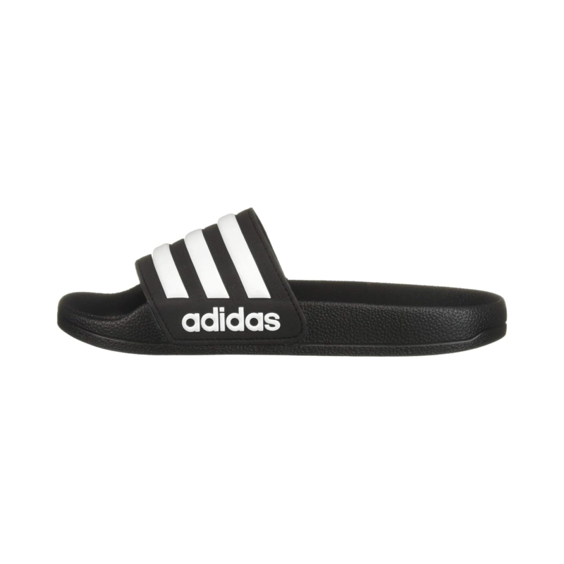 - Theyll love the lasting comfort with the easy-going adidas Kids Adilette Shower Slide. With its slip-on construction, these shoes feature durable synthetic uppers that are designed with a sturdy strap across the toes, soft synthetic lining and a cushioned insole for lasting comfort.