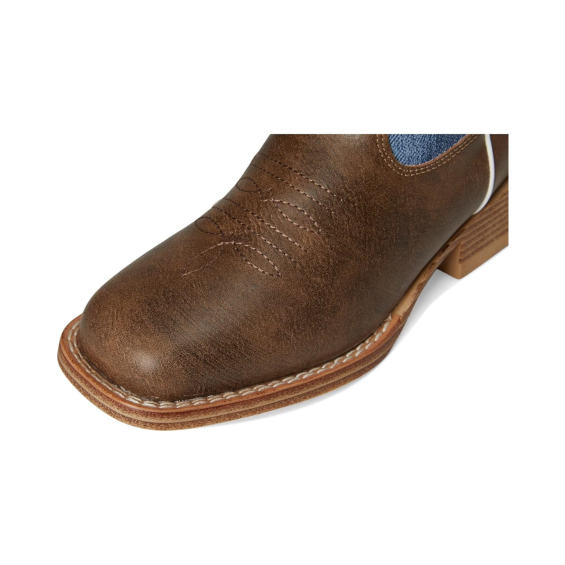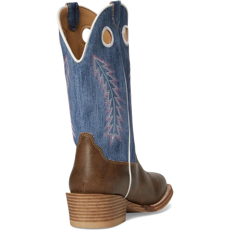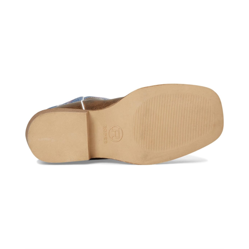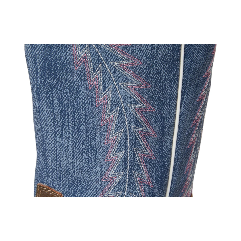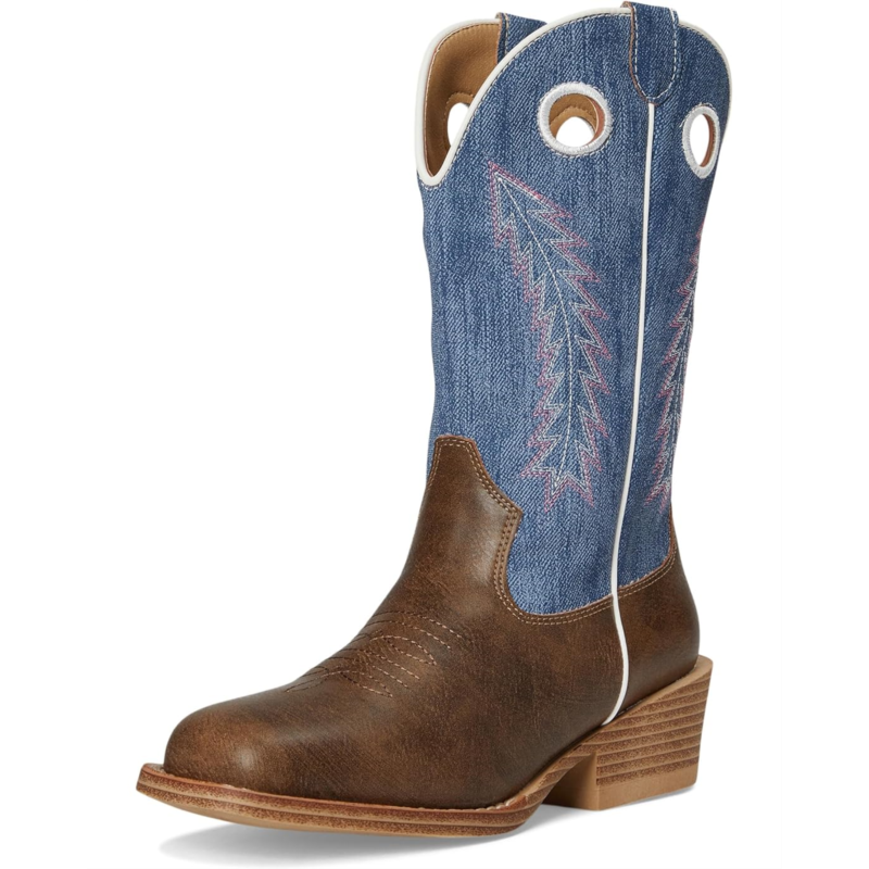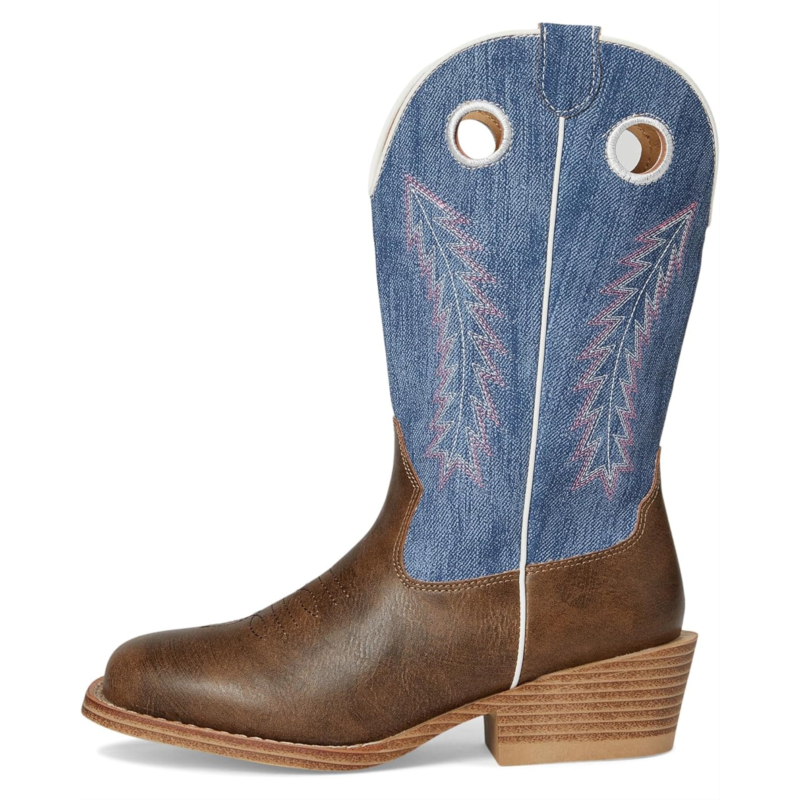 - The Roper Kids Willow boot features a textured denim shaft, accented by classic Western feather stitching for a bold look. It''s built with a flexible thermoplastic polyurethane outsole and a stacked block heel, offering traction and stability. The padded cushioned insole ensures all-day comfort, while pull holes make it easy for little ones to slip them on and off.