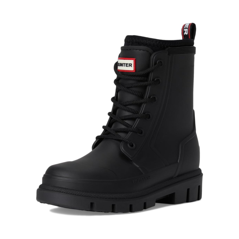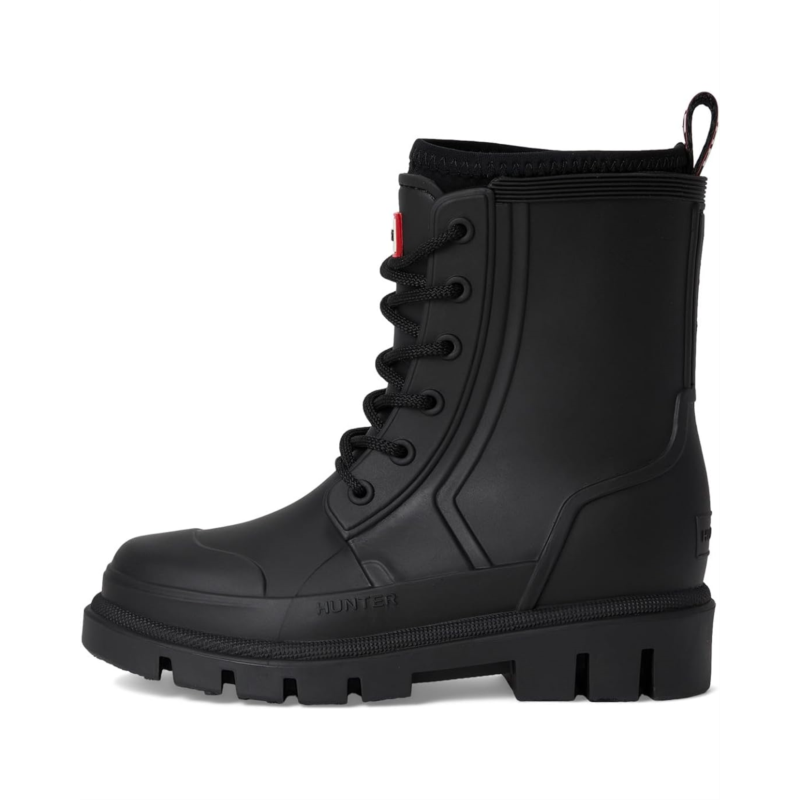 - For the little adventurer that wants to keep comfortable and stylish, the Hunter Kids Stomper casual boots are the perfect wardrobe style. Featuring a lace-up design, molded footbed and are waterproof. Crafted from synthetic upper, polyester lining, and foam insole, featuring round toe, full neoprene sock, easy pull on-and-off, and mid- top silhouette.
