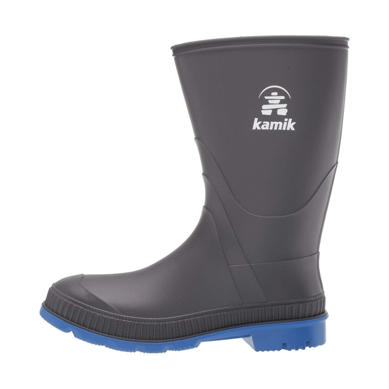 - Find every single puddle on the way to school and splash in with the trustworthy Kamik Kids Stomp rain boots. Constructed with 100% waterproof synthetic rubber to protect against wet elements.