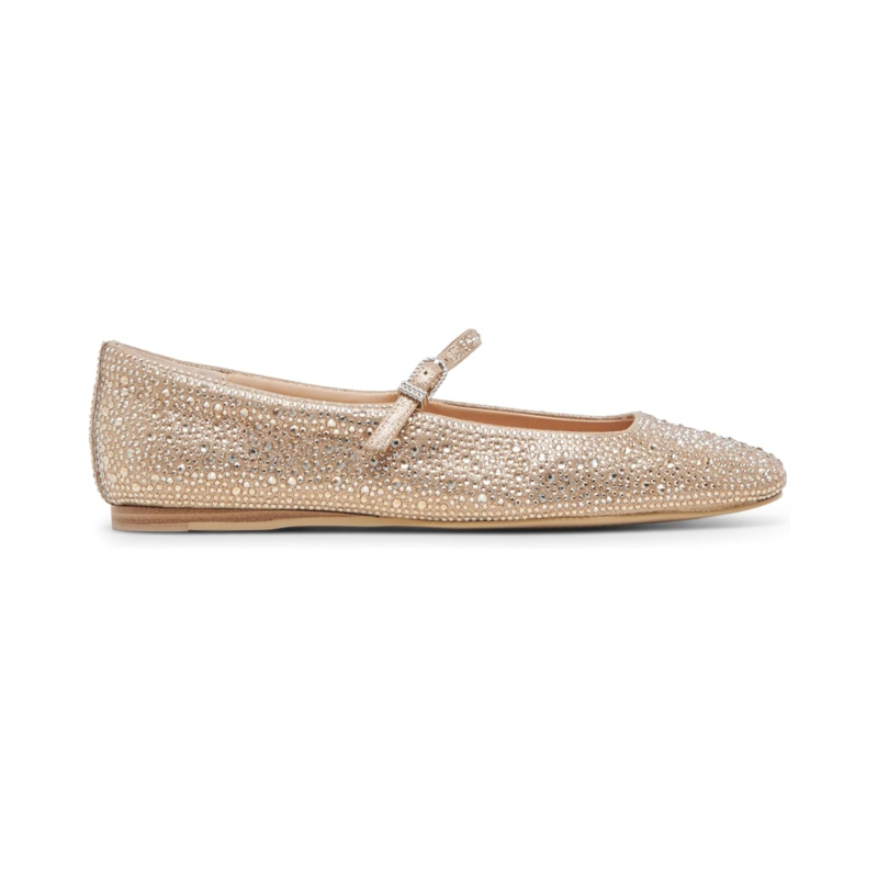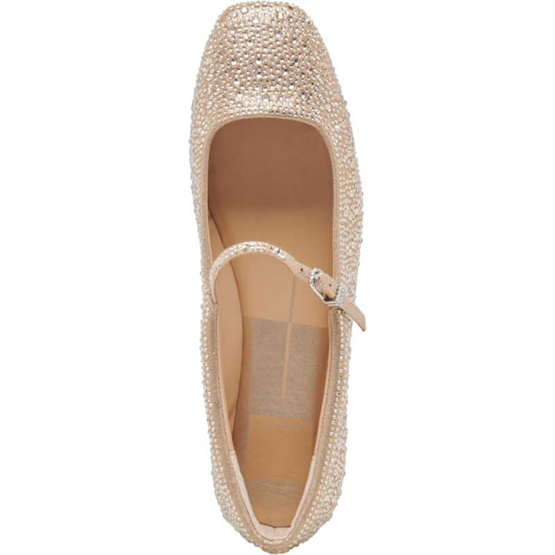 Balletcore for minimalists! The Dolce Vita Reyes Crystal brings the classic ballet flat silhouette that''s trending now to your closet in a pared-back, understated way and the result is a shoe that goes with absolutely everything you''ll be wearing this season. The squared toe pair has leather upper construction with studded ornaments allover and adjustable buckle closure on the midway strap.