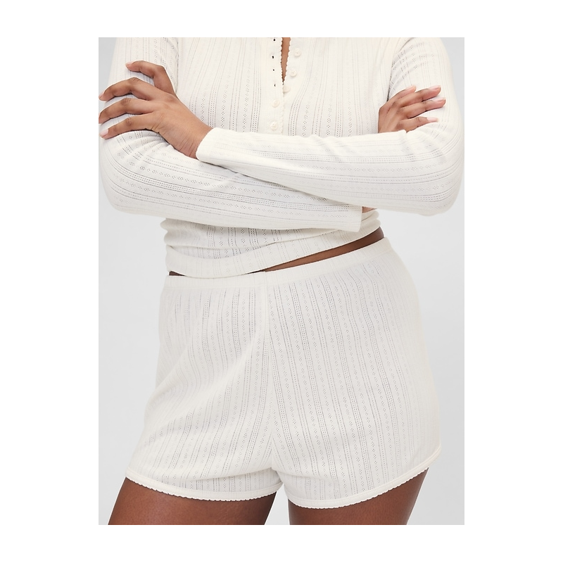 - Soft cotton-blend, pointelle knit pajama shorts.