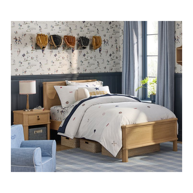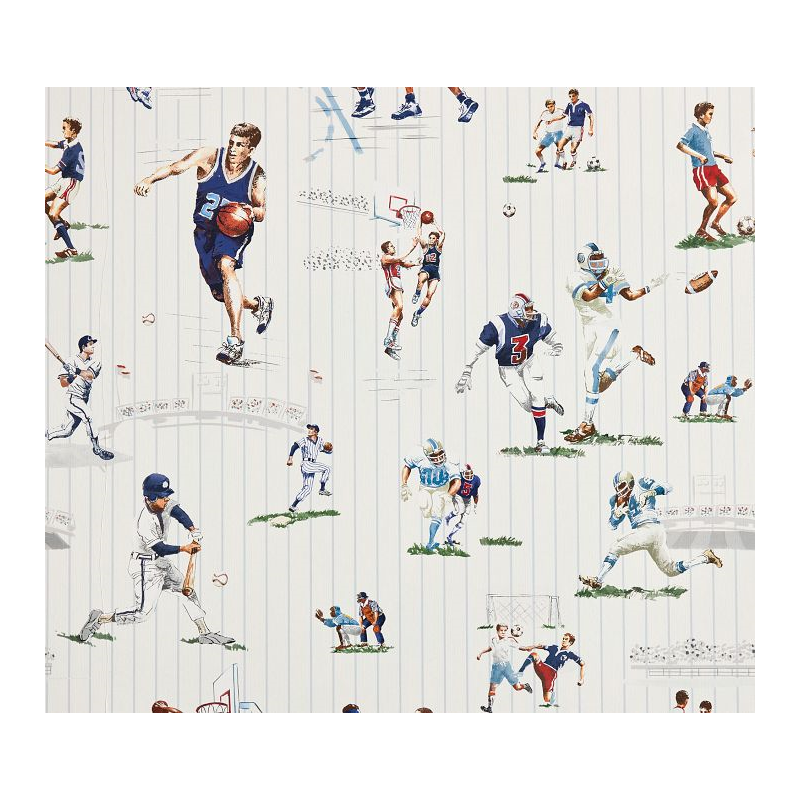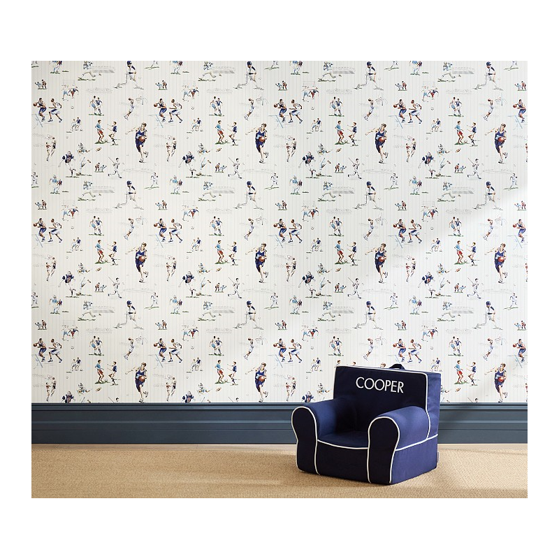 Give their nursery or playroom an all-star look with wallpaper featuring an array of athletes. The design is simple to hang thanks to a pre-pasted or peel-and-stick backing and has a convenient wipe-clean finish.