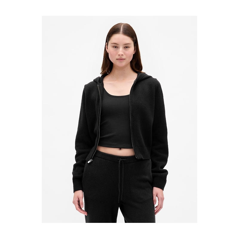 - Supersoft cotton-blend sweater hoodie. In a cropped length.