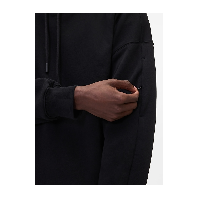 - Soft heavyweight cotton-blend fleece travel hoodie.