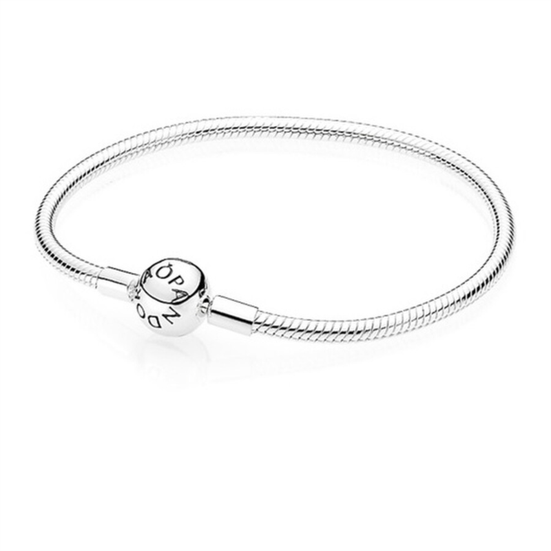Pandora Ladies Bracelets. SKU: 590728. Pandora Moments Snake Chain Bracelet. Begin your Pandora story with this sleek snake chain bracelet, hand-finished in polished sterling silver. Designed as the perfect canvas for your creativity, it can be styled in endless ways ? filled with your favorite charms and clips, worn solo for a minimalist look, or stacked with contrasting bracelets for a touch of texture and personality. Metal: Sterling silver.