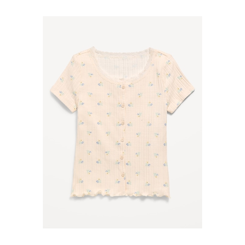 [US] OldNavy Printed Short-Sleeve Lace-Trim Button-Front Top for Girls