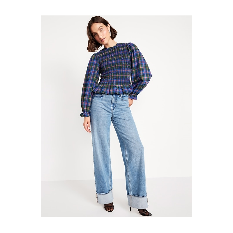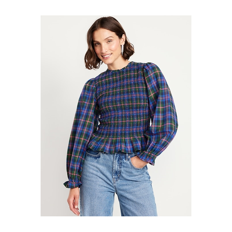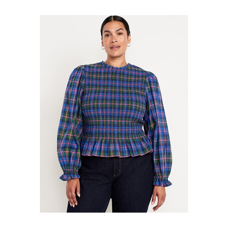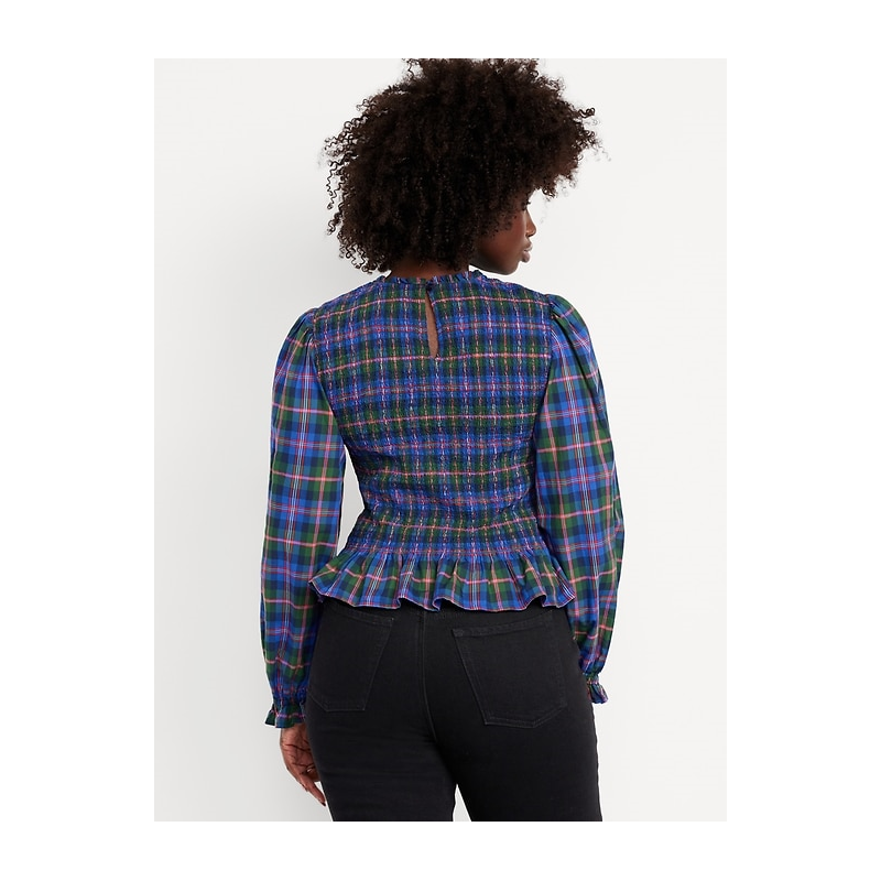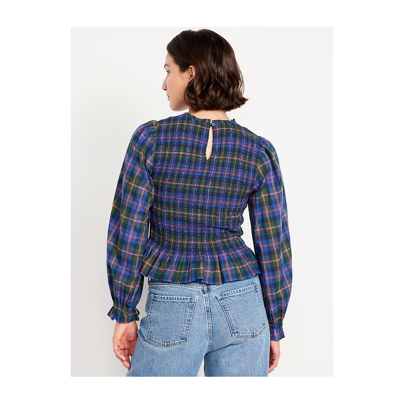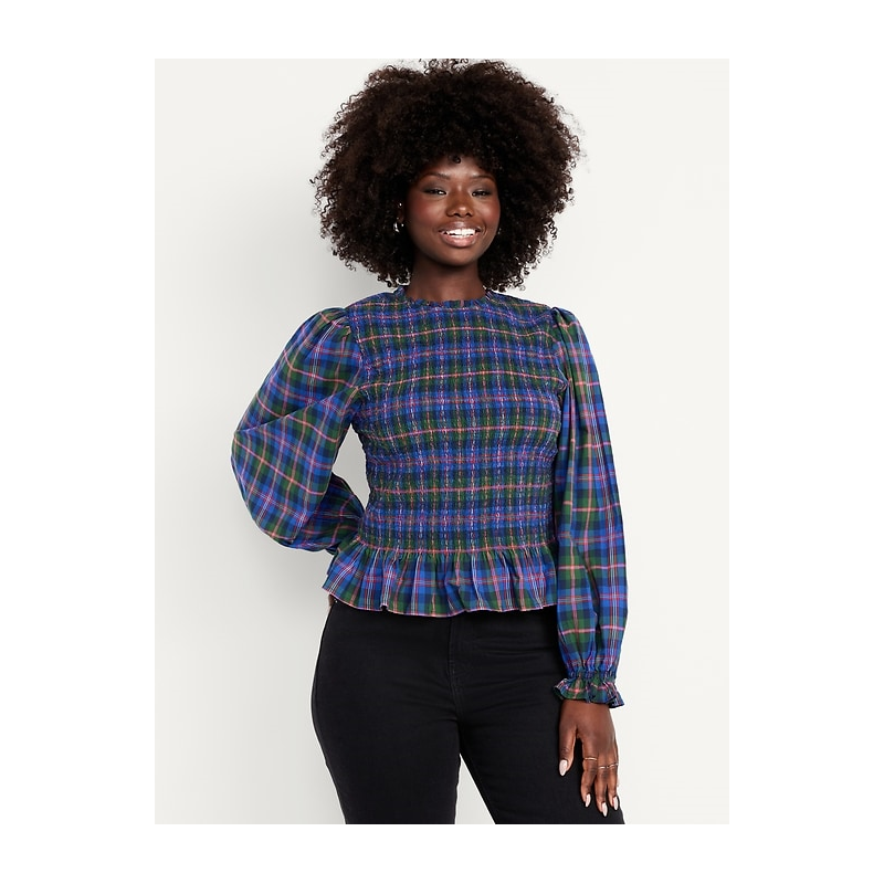 [US] OldNavy Long-Sleeve Plaid Smocked Top