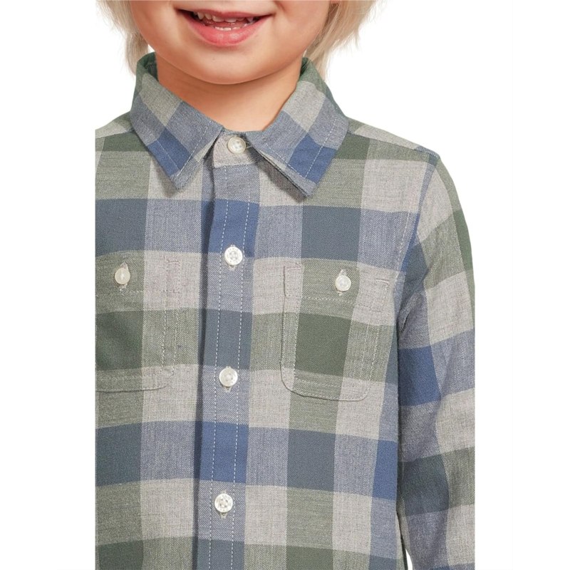 - Keep him looking sharp in the Janie and Jack Plaid Twill Button Down Shirt. Featuring a spread collar with a front button closure, long sleeves with button closure cuffs and button closure chest pockets.