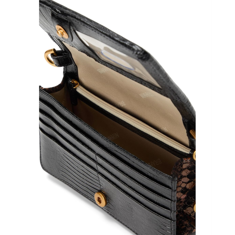 - Brahmin Minuette is a vintage-inspired crossbody with all the functionality of a wallet and the ease of a casual crossbody. The adjustable crossbody strap allows you to carry with comfort, and the back slide-in pocket is perfect for essentials you want to keep close (like your phone). Crafted from signature embossed Melbourne leather, the bag features a fold-over flap with snap closure, a zippered interior pocket, and a back slide-in pocket.