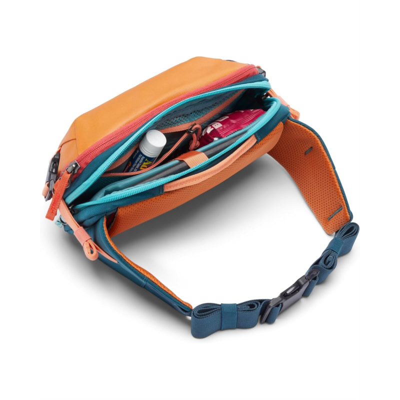 The primary materials that compose this product contain a minimum of 20 percent recycled content.- Designed for life in go-mode, the Cotopaxi 3 L Allpa X Hip Pack is the perfect travel companion, whether youre trekking through the airport, the city, or the rainforest. When its time to consolidate your gear, it fits inside the top pocket of an Allpa 35L or 42L. Crafted from recycled 840D TPU-coated nylon, the bag features a butterflykorea opening for easy access, side-release buckles for compression, and a large main compartment with two-way zippered closure.