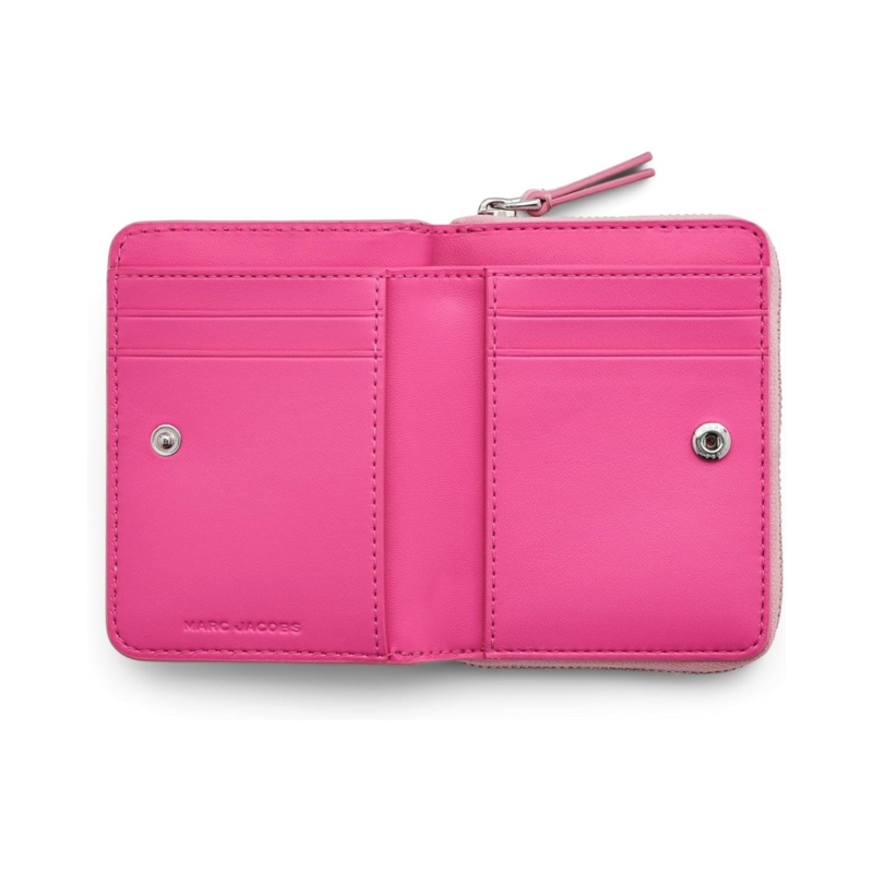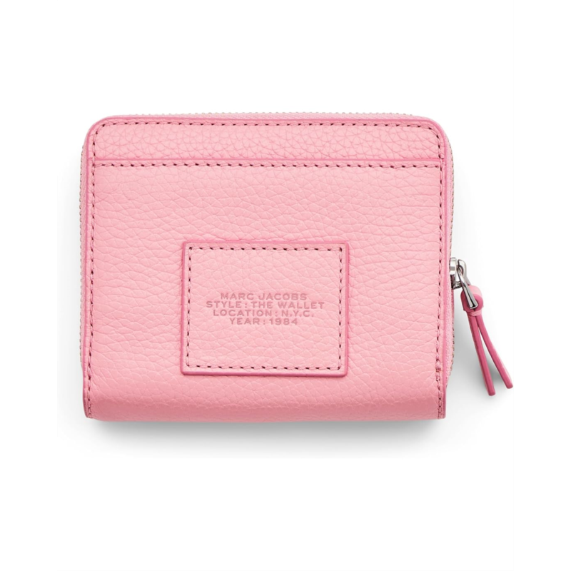 - Carry your cash in the simple and classy design of the Marc Jacobs The Leather Mini Compact Wallet featuring a magnetic snap with an additional zippered compartment, finished with a branded exterior.