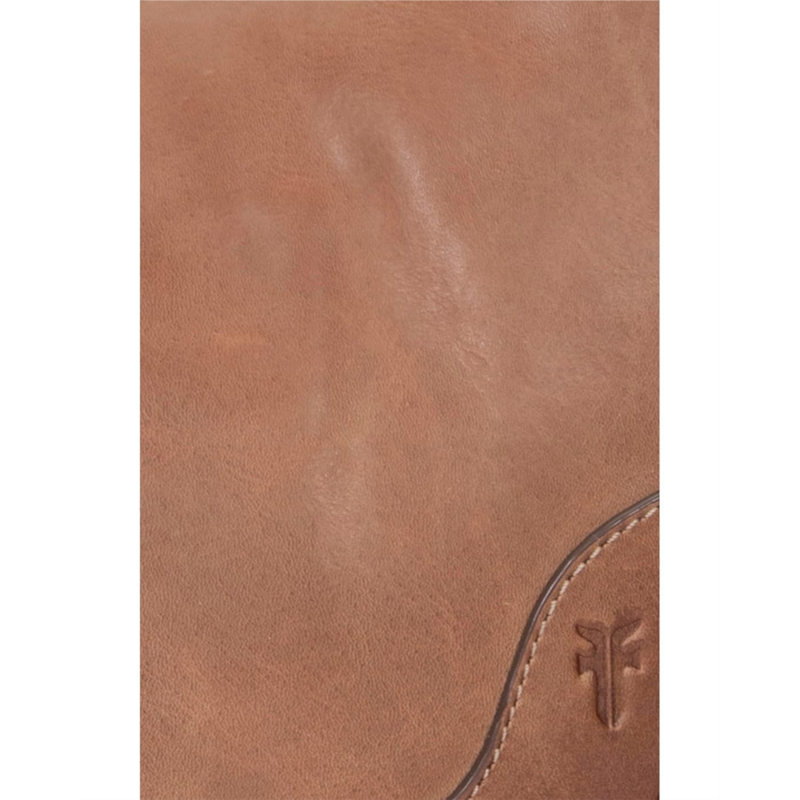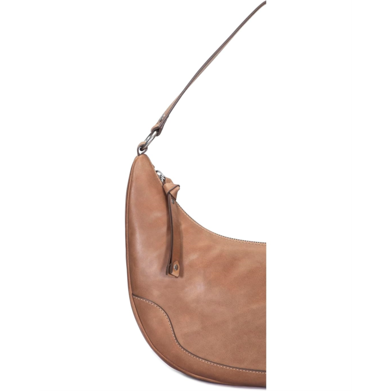 - The Frye Melissa Cresent Hobo stands out with its crescent moon design featuring a zippered closure and a shoulder strap for ease of carrying. Two interior slip pockets and an exterior zippered pocket are designed for added functionality.