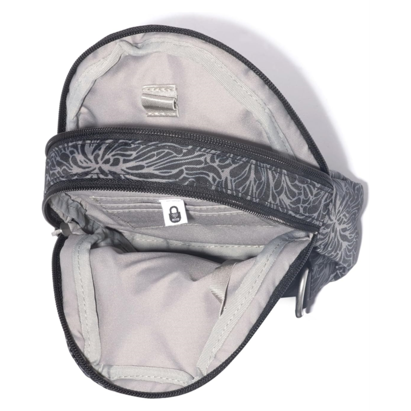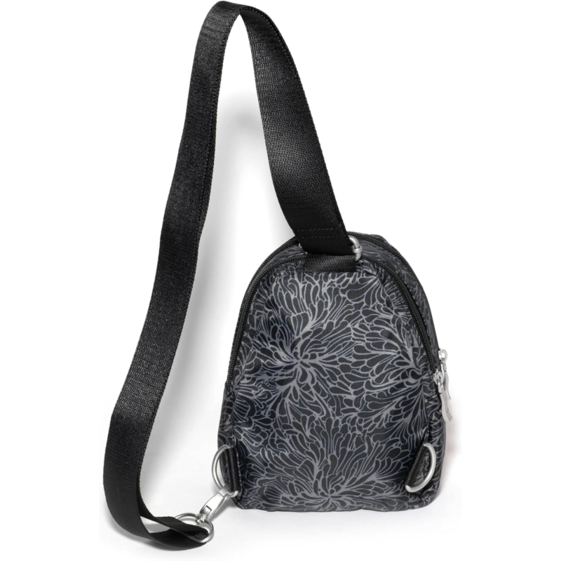 - Designed with an adjustable strap that extends from 26 to 54, the Baggallini Double Zip Mini Sling offers versatile styling. This stylish sling bag can be worn on the left or right side. Easy to carry around, this belt bag comes with a lipstick loop and key leash for added storage and functionality. Get ready for the office or a vacation trip with this chic sling bag.