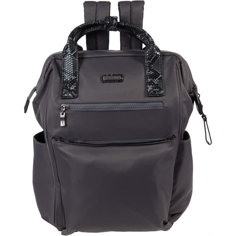 - Dont sacrifice style on your busy day, flaunt the bold Baggallini Soho Backpack with a lightweight water-resistant nylon construction and zipper closure.