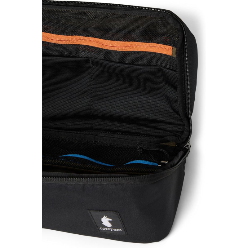 - With a plethora of pockets, the Cotopaxi Viaje Toiletry Kit keeps everything in its place. This durable kit has zippered pockets and sleeves to organize makeup, medications, and more for a seamless getaway. Made from 100% recycled polyester, this zip-up toiletry kit features a back grab handle, a clamshell opening, and an internal organization for added functionality.