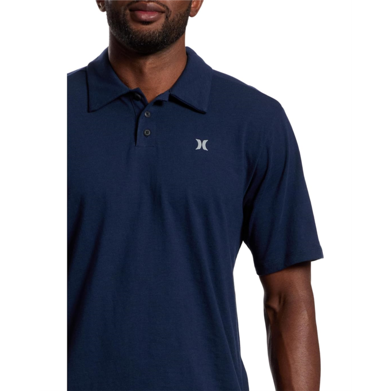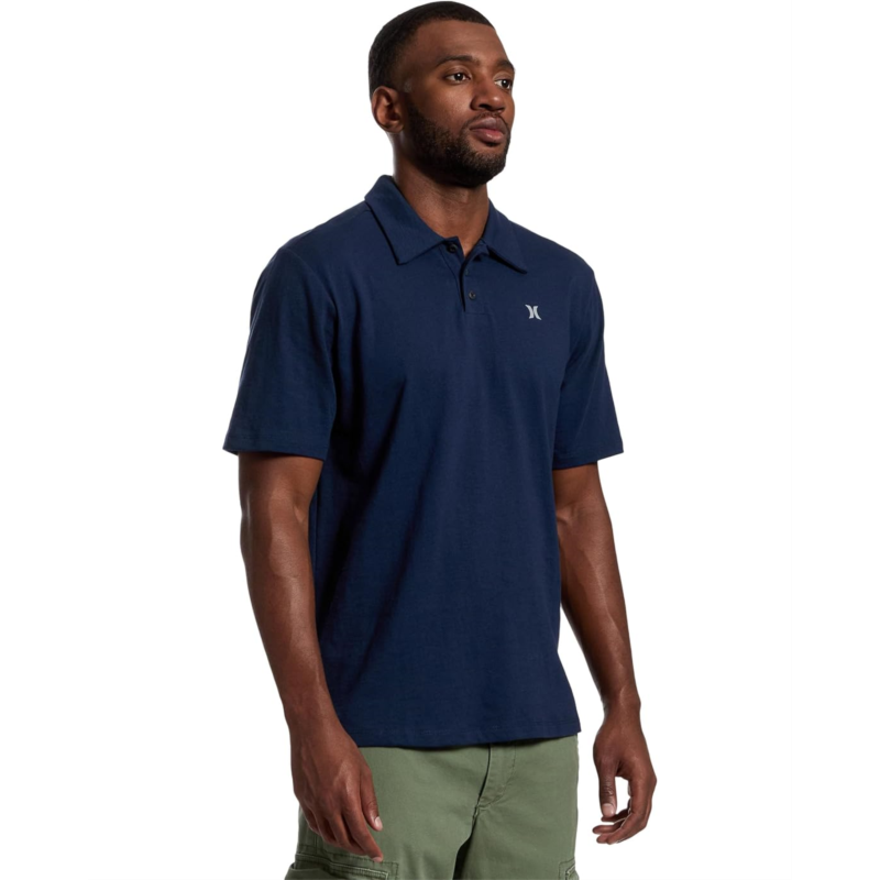 - Maintain your classic looks in the Hurley Icon Slub Polo Short Sleeve. Featuring a classic polo collar with three-button placket, short sleeves and a subtle icon screenprint branding on upper-right chest.