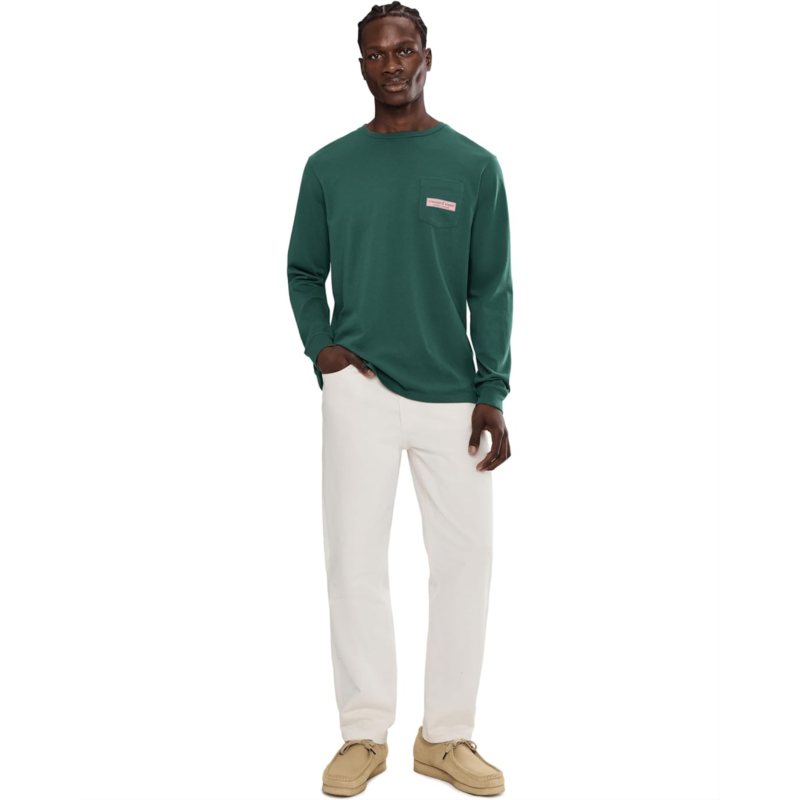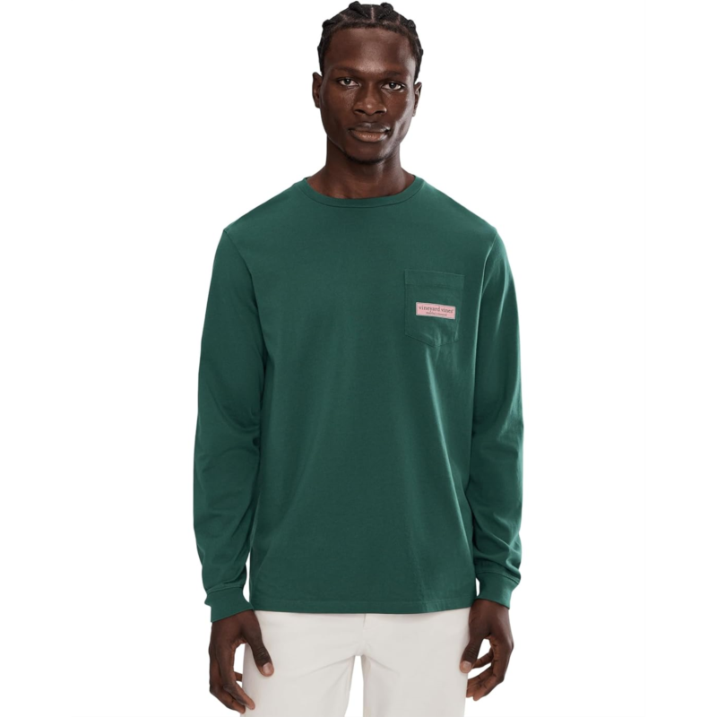 - The original whale is back with the super-stylish Vineyard Vines Classic Logo Box Long Sleeve Tee! The pull-on style tee features a ribbed crew neck, long sleeves, a patch pocket on the left chest, graphic print at the chest pocket & back, and a straight hem. Nothing beats a classic, and nothing beats a quality long-sleeve t-shirt such as this.