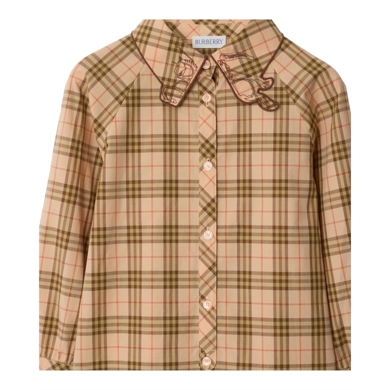 - Timeless plaid, effortless style - The Elodie Check Dress by Burberry Kids! This charming dress blends iconic Burberry sophistication with everyday ease. Featuring a classic collared neck, long sleeves, and button-front closure, it offers a polished yet playful look for your little one. The pull-on design ensures fuss-free dressing, while the above-the-knee length adds a touch of youthful charm. Adorned in Burberrys signature plaid pattern, its perfect for any occasion, from casual outings to special moments.