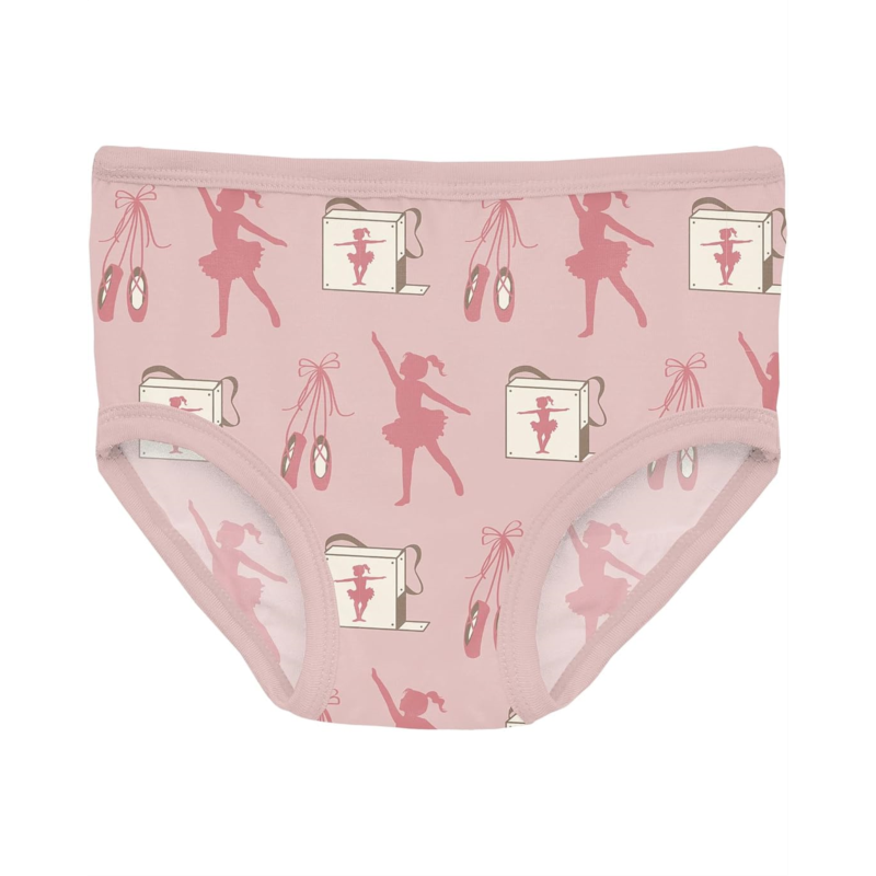 - Keep this Kickee Pants Kids Print Girls Underwear Set of 3 in your wardrobe to get a convenient layer for your intimates throughout the weekdays. They have incredibly soft & stretchy construction with moisture-wicking and tag-free design. The mid-rise elasticated waistband and classic-cut legs allow easy movement. Allover floral fun prints and solid colors make the pants chic in look.