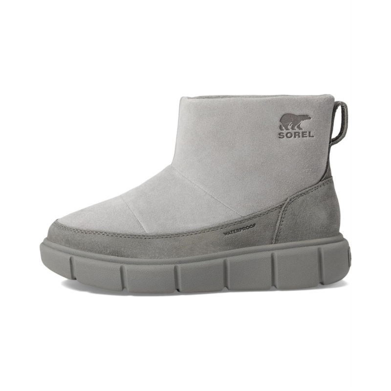 - Step into adventure: Waterproof warmth meets slip-on ease! The SOREL Kids Sorel Explorer III Slip-On WP snow boots combine a stylish waterproof suede upper with a cozy microfleece lining and insole, ensuring your little one stays warm and dry. Designed with a round toe and calf-high silhouette, these boots feature a slip-on design for easy wear. The molded DUOTREAD rubber pods in key traction zones and ground contact EVA perimeter provide excellent grip and stability.